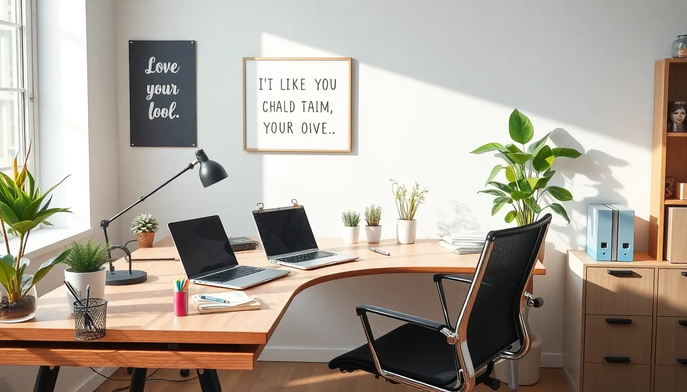 Decor choices significantly impact mood and creativity. Personal touches like artwork or motivational quotes can inspire and energize. Adding plants, such as succulents or ferns, not only beautifies the space but also improves air quality. Color schemes also matter; incorporating bright colors may stimulate creativity while neutral tones create calm. Shelves or wall-mounted displays for personal items or awards showcase achievements and create a sense of belonging. Lighting options, like desk lamps with adjustable brightness, provide adequate illumination for focused work.